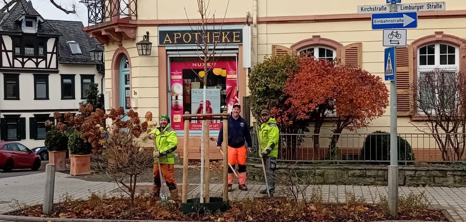 Im Herbst kommt eine Arbeit hinzu: die Pflanzung von Jungbäumen. Aktuell werden insgesamt 39 Bäume im Stadtgebiet Königstein sowie allen drei Stadtteilen von den fleißigen Mitarbeitern gepflanzt. Zusammen mit der Dezernentin für Grünangelegenheiten Gabriela Terhorst klären die Kolleginnen und Kollegen der Grünplanung und des Betriebshofes frühzeitig, welche Baumstandorte und welche Baumarten in Frage kommen. Dabei wird auch der Aspekt klimaangepasste Bäume mitberücksichtigt, um die Nachhaltigkeit der Pflanzungen zu gewährleisten.