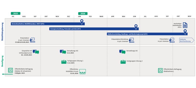 Im Laufe des Jahres wird es eine weitere Beteiligungsmöglichkeit geben, bei der die ausgearbeiteten Maßnahmen vorgestellt und kommentiert werden können. Über diesen nächsten Schritt wird die Stadt rechtzeitig informieren. Ziel ist es, den Mobilitätsplan bis zum Ende des Jahres fertigzustellen.